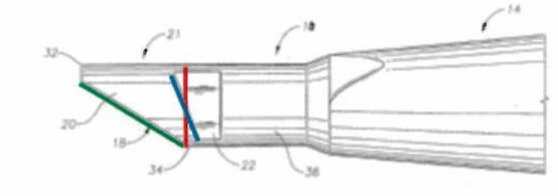 Figur 3 des Streitpatents mit farbig eingezeichneten verschiedenen denkbaren "planes of the opening"